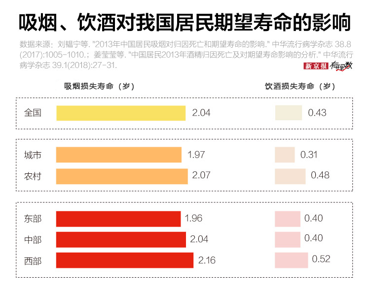 吸烟和饮酒对健康的威胁不仅仅是癌症发病诱因,《中华流行病学杂志》曾在2017年和2018年分别发表过吸烟、酒精对中国居民归因死亡和期望寿命的影响的分析。