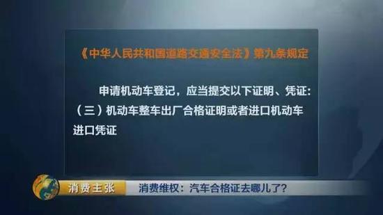 中国消费者协会投诉部 谢龙:根据《合同法》相关规定,消费者买了车就应该拿到合格证,没有拿到合格证,4S店就应该承担赔偿责任。