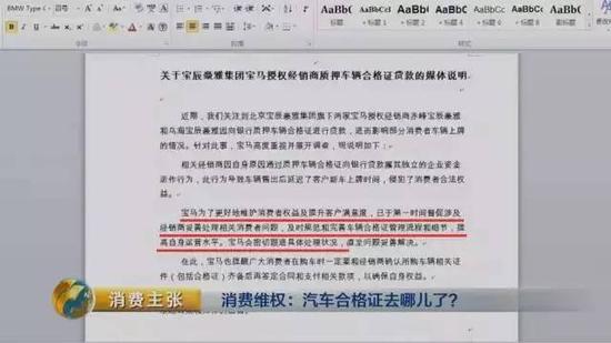 车主们告诉《消费主张》,他们的宝马轿车之所以一直无法上路,就是因为没有拿到车辆合格证,无法上牌照。