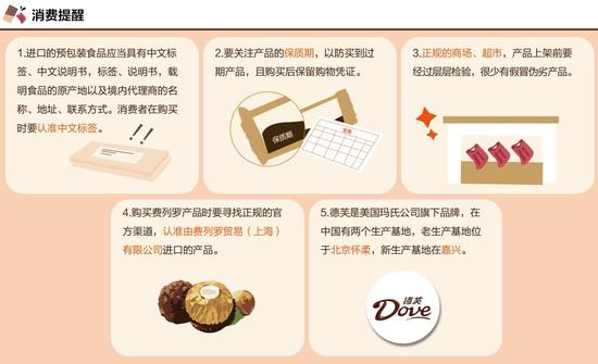 费列罗巧克力消道长则提醒消费者,产品的塑料外壳拆封后,应尽快食用完毕,否则将增加其遭受虫害污染的可能性,而未食用完的产品务必储存于密封容器内,并置于阴凉干燥处。