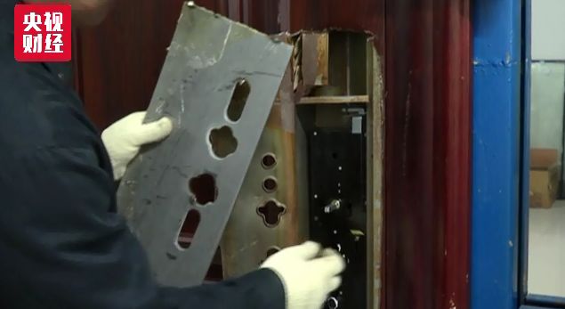 作为居家防护安全产品,防盗门的锁具防护必不可少。标准规定,一扇防盗门必须要在锁具装置前,加装防护钢板。然而,记者看到工程师检测的这扇防盗门,在相应位置门板被破坏后,里面的锁具装置直接就暴露出来。