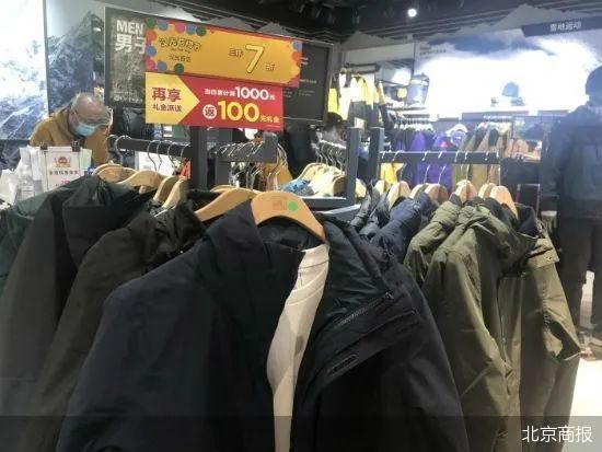 11月8日,北京商报记者走访了北京消协购买上述不合格冲锋衣样品的多个店铺。