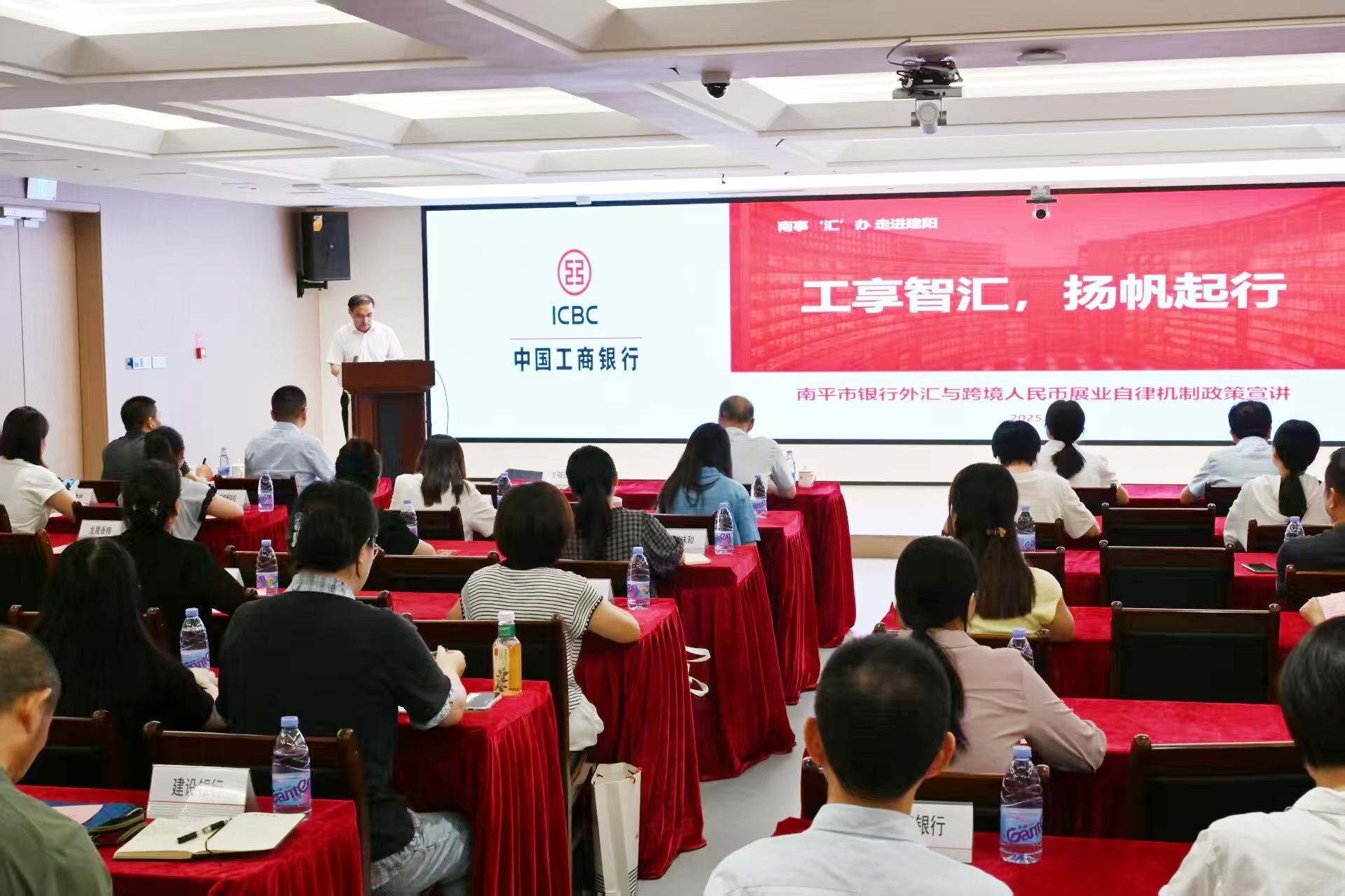 为深入贯彻落实国家外汇管理局南平市分局“南事‘汇’办企业外汇服务提升年”专项行动要求,助力辖内外贸企业提升汇率避险能力,8月20日,由南平市银行外汇与跨境人民币展业自律机制主办、中国工商银行南平分行承办的“工享智汇 扬帆起‘行’”汇率避险宣讲活动在南平市建阳区成功举办。南平市建阳区50余家外贸企业及金融机构代表齐聚一堂,共话汇率避险妙计、共谋外贸稳健发展。