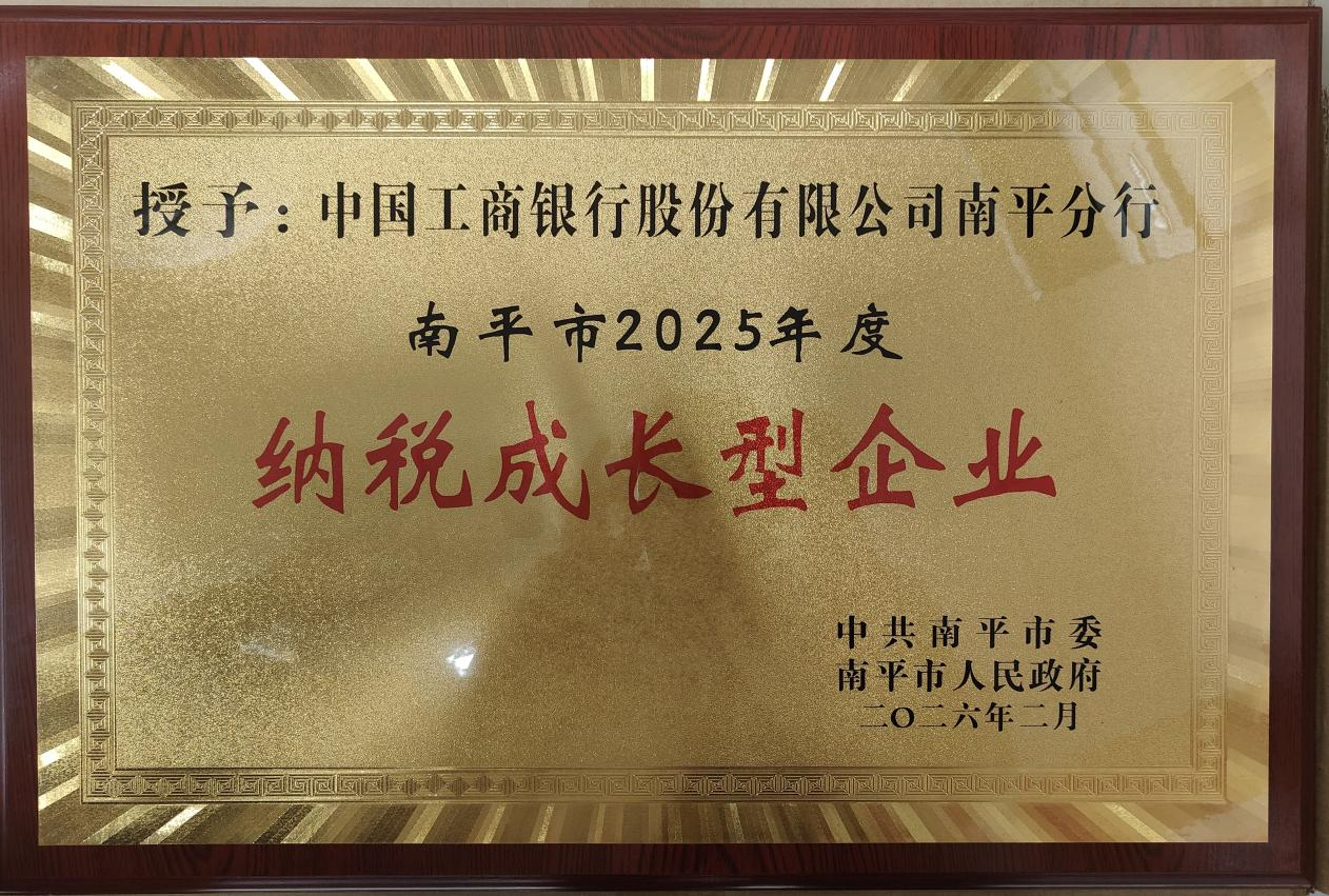 工行南平分行获评“纳税成长型企业”荣誉称号
